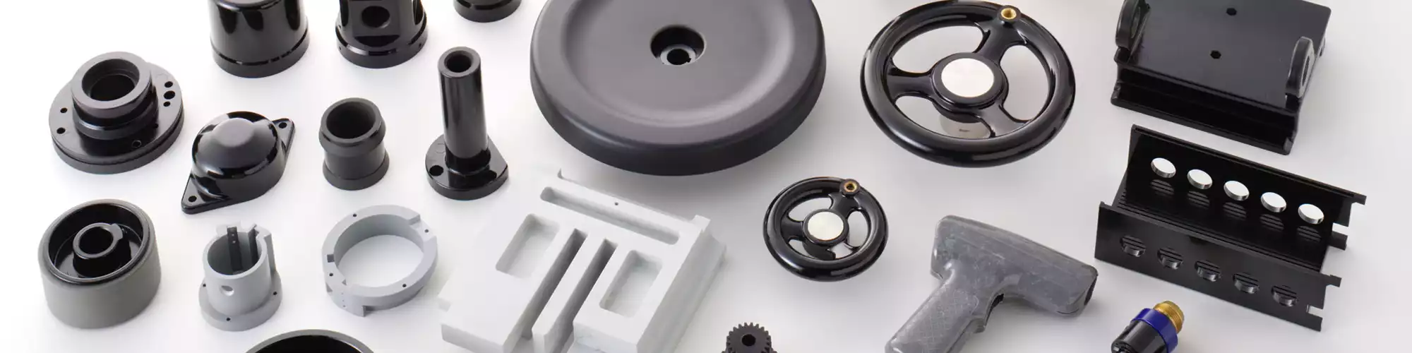 当社は、1949年(昭和24年)に布チップの生産で創業し、一貫して直圧成型(=圧縮成型、コンプレッション成型)による産業用機械部品の生産を行ってまいりました。 フェノール樹脂をはじめとする熱硬化性樹脂は、100年以上の歴史を有する信頼性の高い樹脂であり、耐熱性、耐薬品性、耐候性にすぐれた素材としてさまざまな分野で利用されています。大型品や、肉厚成型、偏肉成型、また、シート材料や流動性のない材料など、直圧成型(直圧成形)でしか作れない製品も多く、各業界よりさまざまなご要望をちょうだいしております。