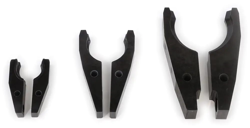 左右が一体となった特殊品やHSK-E25やE30等では可塑性樹脂が使用されている製品もあります。